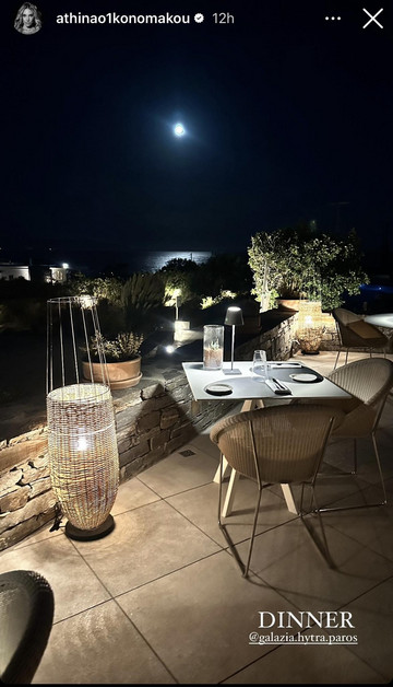 Το βράδυ της Κυριακής, το ζευγάρι απόλαυσε ένα ρομαντικό δείπνο σε γνωστό εστιατόριο της Αντιπάρου, υπό το φως του φεγγαριού, που έκανε τη βραδιά ακόμη πιο μαγευτική.