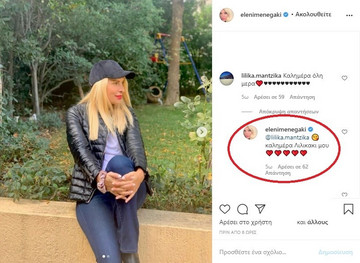 “Καλημέρα Λιλικάκι μου’”, απάντησε η Ελένη Μενεγάκη. Οι δυο τους φαίνεται να έχουν φοβερές σχέσεις, όπως εξάλλου φαίνεται από τα συχνά σχόλια στις φωτογραφίες η μια της άλλης.