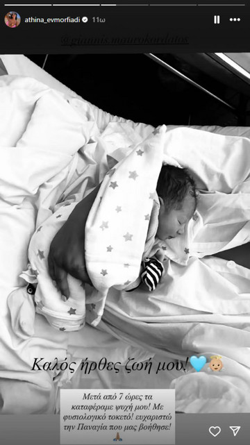 Μια από τις πιο τρυφερές στιγμές της ζωής της ζει η Αθηνά Ευμορφιάδη, η οποία έφερε στον κόσμο το δεύτερο παιδί της και πλέον κρατάει στην αγκαλιά της τον γιο της, καρπό του έρωτά της με τον σύζυγό της, Γιάννη Μαυροκορδάτο.