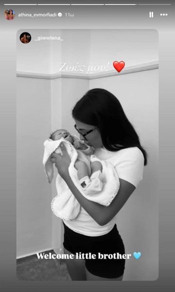 Μια γλυκιά ανάρτηση έκανε και η μεγαλύτερη κόρη της Αθηνάς, κρατώντας στην αγκαλιά της τον μικρό της αδερφό και γράφοντας: «Καλώς ήρθες, μικρέ αδερφέ», με τη μητέρα να σχολιάζει: «Ζωές μου!».