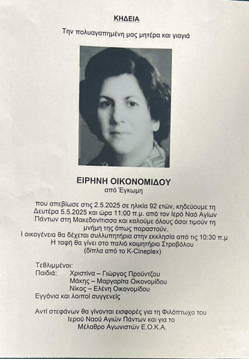 Με λόγια καρδιάς, ο Δήμαρχος Λευκωσίας Χαράλαμπος Προύντζος αποχαιρέτησε τη γιαγιά του, Ειρήνη Οικονομίδου, η οποία έφυγε από τη ζωή.