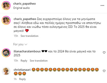 «Σας ευχαριστούμε όλους για τα μηνύματα σας!! Αλήθεια εδώ και πολλές ημέρες προσπαθώ να απαντήσω σε όλους και νιώθω τόσο ευλογημένος! Το 2025 θα είναι μαγικό!»