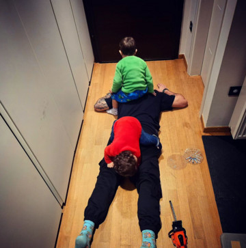Ο γνωστός σεφ και επιχειρηματίας, θέλησε να μας δείξει πως τον αποχαιρετούν τα παιδιά του κάθε πρωί που φεύγει από το σπίτι. Στη φωτογραφία που δημοσίευσε, τον βλέπουμε ξαπλωμένο στην είσοδο του σπιτιού του ενώ πάνω του κάθονται ο 2.5 ετών γιος του, Αχιλλέας και η 1 έτους κόρη του, Ακυλίνα.