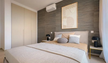 Τα φυσικά χρώματα, το ξύλο, η πέτρα και οι μεταλλικές λεπτομέρειες δημιουργούν ένα μοναδικό περιβάλλον υψηλής αισθητικής που υμνεί τη Μεσογειακή αρχιτεκτονική, προσφέροντας στους ενοίκους των κατοικιών ένα αίσθημα ηρεμίας.