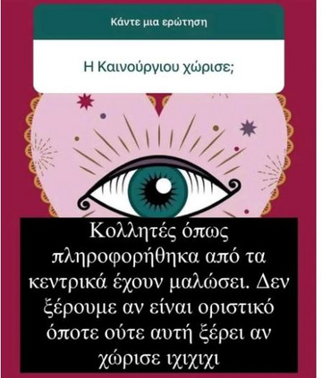 Όταν μία follower την ρώτησε στα πλαίσια ενός Q&A αν το ζευγάρι τελικά, έχει χωρίσει, εκείνη απάντησε: «Κολλητές όπως πληροφορήθηκα από τα κεντρικά έχουν μαλώσει. Δεν ξέρουμε αν είναι οριστικό οπότε ούτε αυτή ξέρει αν χώρισε».