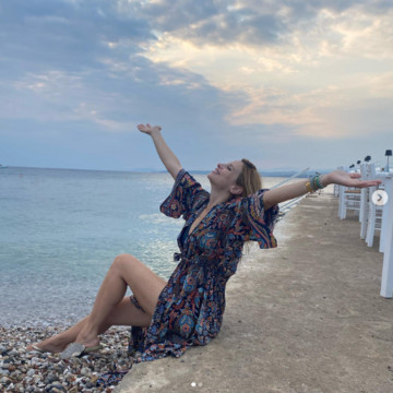 Σε χθεσινή της ανάρτηση, την Παρασκευή 5/8 μας έδειξε πώς περνάει τις ζεστές ημέρες του καλοκαιριού. Στο απόλυτο καλοκαιρινό mood, η παρουσιάστρια ποζάρει ευδιάθετη στη παραλία με ένα μακρύ κιμονό και χωρίς μακιγιάζ. Στη λεζάντα έγραψε ”Στιγμές χαράς”, δείχνοντάς μας πόσο πολύ απολαμβάνει τις ξέγνοιαστες μέρες του καλοκαιριού.