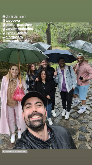 Ο Χάρης Παπαθεοχάρους, ο Τάσος Ευαγγέλου, η Βαρβάρα Ζαχαρίου, ο Δημήτρης Δερματάς, η μοντέρ Κυριακή Αδάμου και ο σεφ της εκπομπής, Γιώργος Ερωτοκρίτου μαζί με την Χριστιάνα Αριστοτέλους απολαμβάνουν τις ομορφιές του χωριού, παρόλο που ο καιρός ήταν λίγο βροχερός στον Καλοπαναγιώτη.