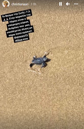 Η παρουσιάστρια φροντίζει να επισκέπτεται συχνά διάφορες παραλίες του νησιού αφού λατρεύει το κυπριακό καλοκαίρι. Σε χθεσινή της ανάρτηση, μας έδειξε την εξόρμησή της στη παραλία της Λάρας στην Πάφο, παρέα με τα παιδιά της, Μελίνα και Ανδρέα και μερικούς φίλους της. Η παρουσιάστρια ενθουσιάστηκε με τις χελωνίτσες που υπάρχουν στη Λάρα και έγραψε στη φωτογραφία ”Το θαύμα της ζωής”.