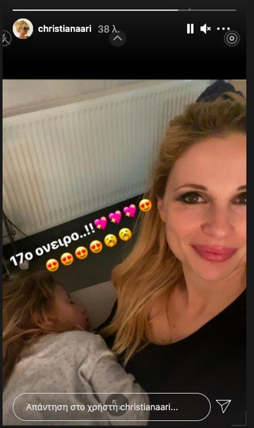 Η Χριστιάνα Αριστοτέλους πόζαρε στην κάμερα, ενώ κρατούσε αγκαλιά την κόρη της, η οποία κοιμόταν βαθιά στον καναπέ και χαριτολογώντας έγραψε πως είναι το “17 όνειρο” της.