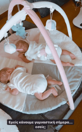 Η Χριστίνα περνά τις περισσότερες ώρες της ημέρας μέσα στο σπίτι και περιποιείται τα δίδυμάκια της, με τα οποία απ’ ότι φαίνεται περνά υπέροχες στιγμές. Έτσι, λοιπόν, κοινοποίησε μία εξ’ αυτών όπου όπως ανέφερε έκαναν τη γυμναστική τους!