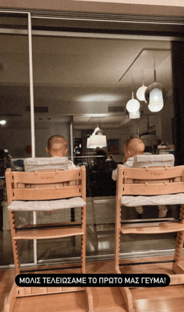 Η Χριστίνα Μπόμπα μοιράστηκε μια φωτογραφία με τους followers της όπου δείχνει τις δίδυμες στα καρεκλάκια τους, τα οποία κατασκευάστηκαν ειδικά για εκείνες.