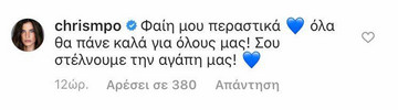 Στο post με την επίσημη ανακοίνωση της παρουσιάστριας, η γνωστή Influencer θέλησε να ευχηθεί περαστικά στη οικοδέσποινα του “Πρωινού” και να της στείλει ένα θετικό μήνυμα συμπαράστασης και ελπίδας.