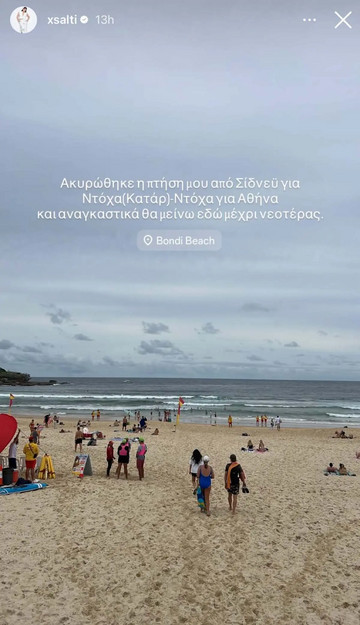 «Ακυρώθηκε η πτήση μου από Σίδνεϋ για Ντόχα (Κατάρ) και Ντόχα για Αθήνα και αναγκαστικά θα μείνω εδώ μέχρι νεοτέρας», σημείωσε η Χριστίνα Σάλτη στην ανάρτηση που έκανε στον προσωπικό της λογαριασμό στο Instagram.