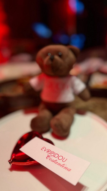 Η διακόσμηση, με την επιμέλεια της γνωστής event planner Χάρις Πότσου, απέπνεε ρομαντική ατμόσφαιρα, αποτυπώνοντας πλήρως το πνεύμα του Αγίου Βαλεντίνου, με κατακόκκινα κεριά, καρδιές, λουλούδια και χαριτωμένα αρκουδάκια, δημιουργώντας έναν παραμυθένιο χώρο.