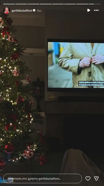 Το ζευγάρι που από τότε που έγινε γνωστή η σχέση του απασχολεί τα media, μοιράστηκε μέσω των social media -φυσικά- ένα στιγμιότυπο από το Χριστουγεννιάτικο δέντρο τους. Πιο συγκεκριμένα, η Γαρυφαλλιά Καληφώνη το βράδυ της Τρίτης 25/11 δημοσίευσε ένα story στο οποίο φαίνεται το δέντρο, πλούσια στολισμένο με κόκκινες μπάλες, κορδέλες και λαμπάκια να δημιουργεί μια ιδιαίτερα cozy ατμόσφαιρα, ιδανική για χαλαρές στιγμές στο σπίτι.