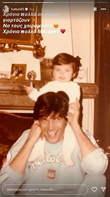Χθες, Κυριακή 26 Οκτωβρίου, η παρουσιάστρια μοιράστηκε το στιγμιότυπο στο Instagram, συνοδεύοντάς το με τρυφερά λόγια: «Χρόνια πολλά σε όσους γιορτάζουν. Να τους χαιρόμαστε. Χρόνια πολλά μπαμπά».