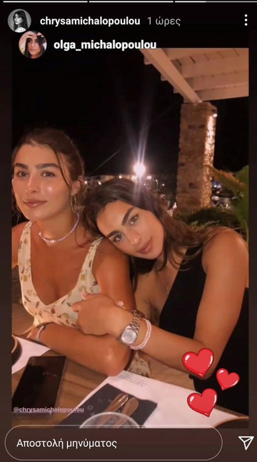 Το βράδυ του Σαββάτου, η Χρύσα Μιχαλοπούλου έφαγε στο μαγαζί του συντρόφου της μαζί με την αδερφή της, Όλγα, που βρίσκεται επίσης στο πανέμορφο κυκλαδίτικο νησί.