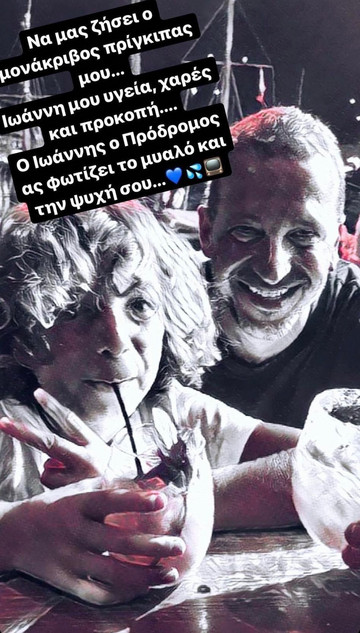 “Να μας ζήσει ο μονάκριβος πρίγκιπάς μου. Ιωάννη μου, υγεία, χαρές και προκοπή. Ο Ιωάννης ο Πρόδρομος ας φωτίζει το μυαλό και τη ψυχή σου”