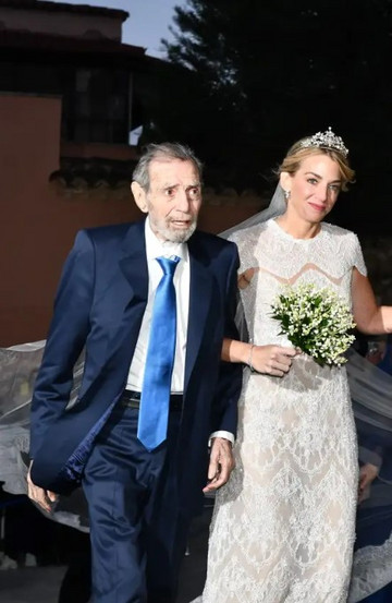 Ένα υπέροχο Christos Costarellos couture δαντελένιο νυφικό, όλο κεντημένο με κρύσταλλα, σε maxi γραμμή που στο πάνω μέρος είχε ένα sheer σημείο και τονισμένους ώμους! Ολοκλήρωσε το bridal look με πέπλο που κατέληγε σε χειροποίητη δαντέλα και βεβαίως φόρεσε κάτι από την οικογένεια του συζύγου της και την βασιλική οικογένεια, μία τιάρα με διαμάντια από την συλλογή της βασιλικής οικογένειας!Πρόκειται για την αντίκα Corsair τιάρα, η οποία είναι μέρος της συλλογής τέως βασίλισσας Άννας Μαρίας.
