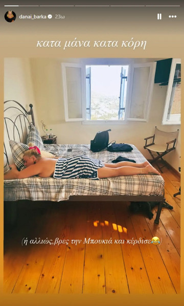 Σε story που ανέβασε στις 23 Αυγούστου, η ηθοποιός και παρουσιάστρια ποζάρει topless, ξαπλωμένη στο κρεβάτι, καλυμμένη μόνο με μια πετσέτα, σε μια χαλαρή αλλά εντυπωσιακή στιγμή.