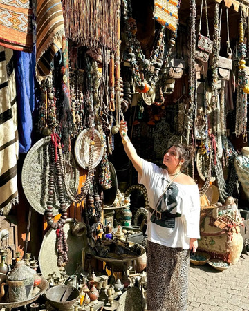 Περιηγήθηκε στο μοναδικό παζάρι μπαχαρικών του Μαρακές και αγόρασε Babouche, τα περίφημα αραβικά slides, που φοριούνται εδώ και αιώνες από άνδρες, γυναίκες και παιδιά.