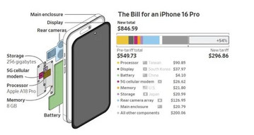 Με τις εκτιμήσεις του Λαμ, η εργασία συναρμολόγησης που ίσως κοστίζει 30 δολάρια ανά τηλέφωνο στην Κίνα, μπορεί να φτάσει τα 300 δολάρια στις ΗΠΑ. Και αν κάθε εξάρτημα, από την οθόνη αφής μέχρι την εσωτερική αποθήκευση, κατασκευαζόταν εδώ; Ναι, θα κόστιζε δισεκατομμύρια δολάρια, αναφέρει η WSJ.