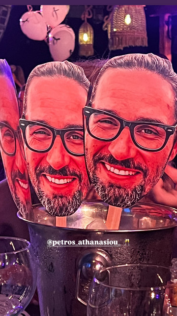 Όλη η παρέα κρατούσε χαρτονένες μάσκες με το πρόσωπο του γαμπρού, ενώ κάποια στιγμή ο Hovig διέκοψε τη συναυλία για να πει: «Να μας ζήσει ο Πέτρος μας!»