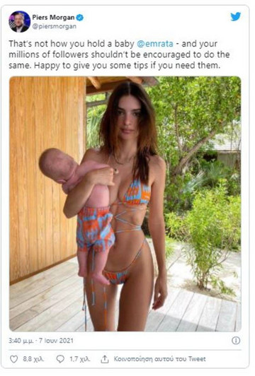 Ο διάσημος Βρετανός δημοσιογράφος, Piers Morgan, δεν δίστασε να τοποθετηθεί και να σχολιάσει τη φωτογραφία του μοντέλου, μέσω Twitter.
