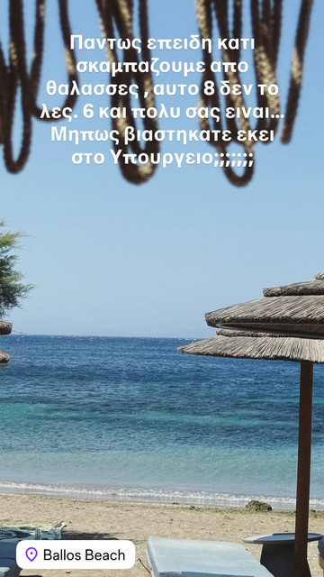 «Αποκλεισμένοι στις Κυκλάδες με 8 μποφόρ και απαγορευτικό. Ε, δεν το λες και φυλακή», έγραψε σε story στο Instagram, συνοδεύοντας τη φράση με μία φωτογραφία από το ομολογουμένως πανέμορφο τοπίο της Τήνου.
