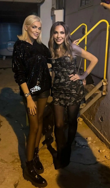 Στην παράσταση ήταν και η Σάσα Σταμάτη και δεν έχασε την ευκαιρία να φωτογραφηθεί με τη γνωστή τραγουδίστρια στα παρασκήνια. Η ίδια επέλεξε για την περίσταση ένα πολύ κομψό φλοράλ μίνι φόρεμα της σχεδιάστριας Magda Butrym, που έχει περίπου 1.000 ευρώ. Το συνδύασε με μποτάκια και ένα μακρύ oversized σακάκι.