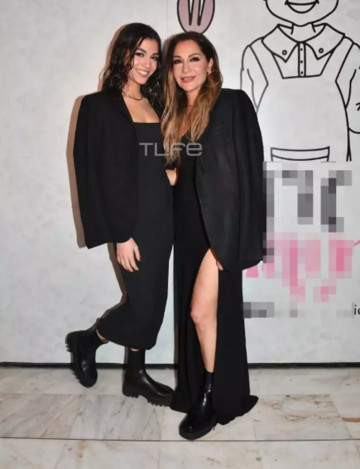 Φυσικά και η Δέσποινα Βανδή ήταν στη λίστα των καλεσμένων μιας και είναι ο προσωπικός της γυμναστής. Μαμά και κόρη ντυμένες στα μαύρα πόζαραν αγκαλιά στον φωτογραφικό φακό.