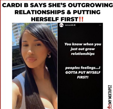 Η Cardi και ο Offset πυροδότησαν για πρώτη φορά φήμες χωρισμού την περασμένη εβδομάδα, όταν έκαναν unfollow ο ένας τον άλλον στα social media, με την ίδια να ανεβάζει storiesαναφέροντας πως από εδώ και πέρα ο εαυτός της θα είναι πάνω από όλα.