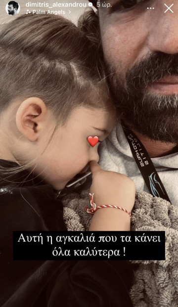 Στο τελευταίο του Instagram story, ο Δημήτρης Αλεξάνδρου μοιράστηκε με τους ακολούθους του μια τρυφερή εικόνα, όπου κρατά στην αγκαλιά του τον Πάρη, συνοδευόμενη από την εξομολόγησή του: «Αυτή η αγκαλιά που τα κάνει όλα καλύτερα».