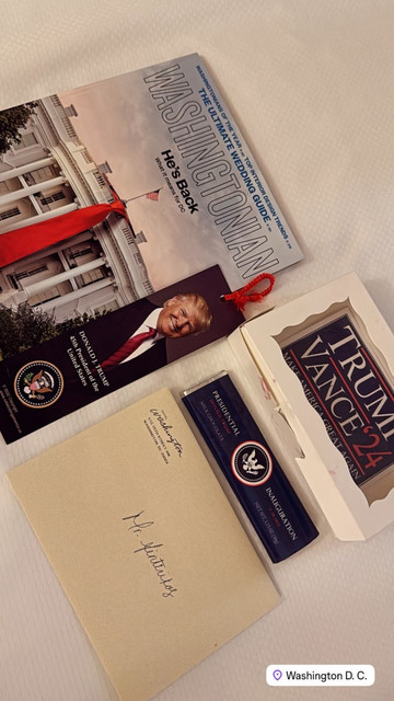 Ο Δημήτρης Φιντιρίκος, μάλιστα, ανέβασε insta story, στο οποίο έδειξε τα «αναμνηστικά» του Προέδρου Τραμπ και την πρόσκληση με το όνομά του για την ορκωμοσία.