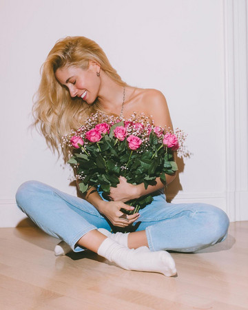 Συγκεκριμένα, πόζαρε μόνο με ένα jean παντελόνι και με ροζ τριαντάφυλλα μπροστά από το στήθος της και αρκέστηκε να γράψει μόνο τον αριθμό 37.