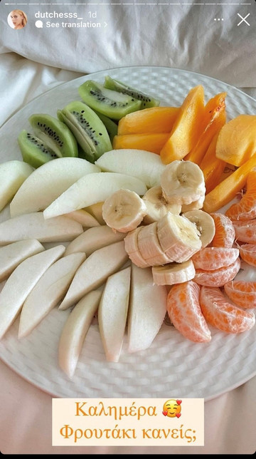 Σε μια της ανάρτηση λοιπόν μας έδειξε τι τρώει για πρωϊνό και όπως θα δεις, δεν τρώει ούτε pancakes αλλά ούτε και ψωμί. Όπως φαίνεται στη φωτογραφία, η Δούκισσα προτιμάει να αρχίζει τη μέρα της, με ένα γεμάτο πιάτο από διάφορα φρούτα τα οποία θα τις παρέχουν τις απαραίτητες βιταμίνες για να αρχίσει τη μέρα της.