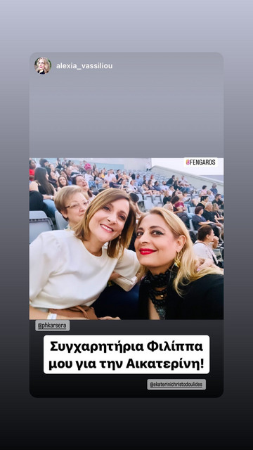 Κατά την διάρκεια της συναυλίας , η πρώτη κυρία συναντήθηκε με την τραγουδίστρια Αλέξια με τηνν δεύτερη να δημοσιεύει στόρι στον προσωπικό της λογαριασμό στο Instagram και να γράφει: “Συγχαρητήρια Φιλίππα μου για την Αικατερίνη”