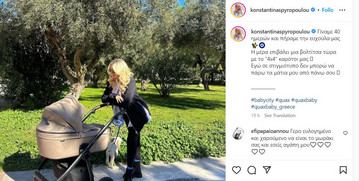 Στη φωτογραφία, η Κωνσταντίνα Σπυροπούλου φαίνεται να κοιτά το καροτσάκι, όπου βρίσκεται ο γιος της, ενώ στο άλλο της χέρι κρατάει το σκυλάκι της. Τα likes και οι ευχές έπεσαν βροχή και ανάμεσα σε αυτούς που της ευχήθηκαν για το μωράκι της ήταν και η Κύπρια σχεδιάστρια Έφη Παπαϊωάννου.