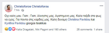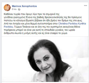 Να την αποχαιρετήσουμε μέσα από τα social media θέλησαν…οικογένεια, πρώην συνάδελφοι, φίλοι και καλλιτέχνες. Ανάμεσα σ’ αυτούς, ο Μαρίνος Ξενοφώντος, ο Σοφοκλής Κασκαούνιας, ο Χριστόφορος Χριστοφόρου και άλλοι.