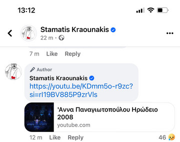 Ο γνωστός μουσικοσυνθέτης έγραψε “Έφυγε η Άννα” και σε σχόλιο πιο κάτω ανάρτηση την εμφάνιση της στο Ηρώδειο.