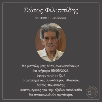 Έφυγε από τη ζωή σε ηλικία 77 ετών ο ηθοποιός Σώτος Φιλιππίδης, ανήμερα του Πάσχα.