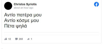 «Αντίο πατέρα μου… Αντίο κόσμε μου… Πέτα ψηλά», έγραψε ο Χρήστος Συριώτης ο οποίος θρηνείς για την απώλεια του πατέρα του.