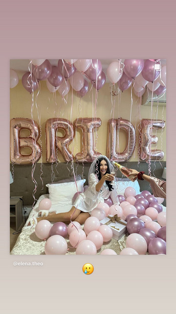 Έκει βέβαια την περίμενε μια μεγάλη έκπληξη, αφού οι φίλες της γέμισαν το δωμάτιο της με μπαλόνια που έγραφαν “bride” ενώ το ταβάνι του δωματίου ήταν γεμάτο με μπαλόνια σε ροζ αποχρώσεις.