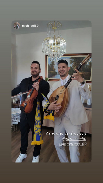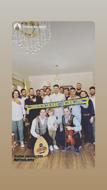 Μάλιστα, ο γνωστός Κύπριος επιχειρηματίας έκανε και ένα ιδιαίτερο ζώσιμο καθώς οι φίλοι του χρησιμοποίησαν κασκόλ της ποδοσφαιρικής ομάδας που υποστηρίζει, της ΑΕΛ.
