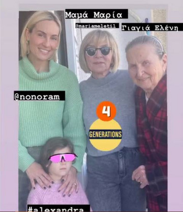 Η Ελεονώρα Μελέτη, φωτογραφήθηκε σε τριπλό ρόλο, αυτόν της μαμάς, της κόρης και της εγγονής και το χαμόγελό της μαρτυρά τη χαρά της που κατάφερε να χωρέσει 4 γυναίκες της οικογένειάς της, 4 γυναίκες την κάθε μία από άλλη γενιά στο Instagram Story της.