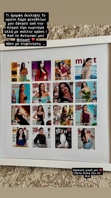 «Τι όμορφη έκπληξη! Το πρώτο δώρο γενεθλίων μου έφτασε από την Κύπρο. Λίγο νωρίτερα, αλλά με πολλήν αγάπη! Από το Αντωνάκι μου! Πόσο με συγκίνησες…», έγραψε η ίδια στη λεζάντα.