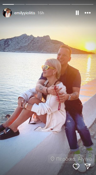 Μάλιστα σε μια από αυτές που μοιράστηκε ανήμερα του Πάσχα, την είδαμε στην αγκαλιά του συντρόφου της, Χρύσναθου Τσουρούλη. Το αγαπημένο ζευγάρι πόζαρε με θέα το ηλιοβασίλεμμα του ελληνικού νησιού.