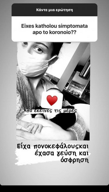 Η δημοσιογράφος μέσα από ερωτήσεις των διαδικτυακών της φίλων του “Q&A” sticker αποκάλυψε πως νόσησε από κορωνοϊό, τόσο η ίδια όσο και η κορούλα της, Μαριλίζα.