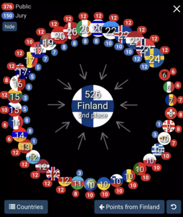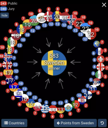 Ωστόσο, το πιο παράδοξο είναι ότι η Σουηδία βγήκε νικήτρια χωρίς να πάρει ούτε ένα 12άρι από το τηλεοπτικό κοινό. Ο κόσμος δεν πίστεψε τη Loreen, σε αντίθεση με τον 29χρονο Φινλανδό Käärijä που πήρε δεκαοκτώ 12άρια από το κοινό.