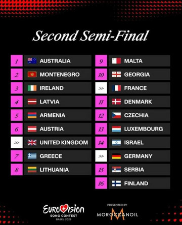 Το βράδυ της Πέμπτης, 27 Μαρτίου, ανακοινώθηκε η σειρά εμφάνισης των χωρών στους δύο ημιτελικούς της Eurovision 2025, έπειτα από απόφαση της παραγωγής.